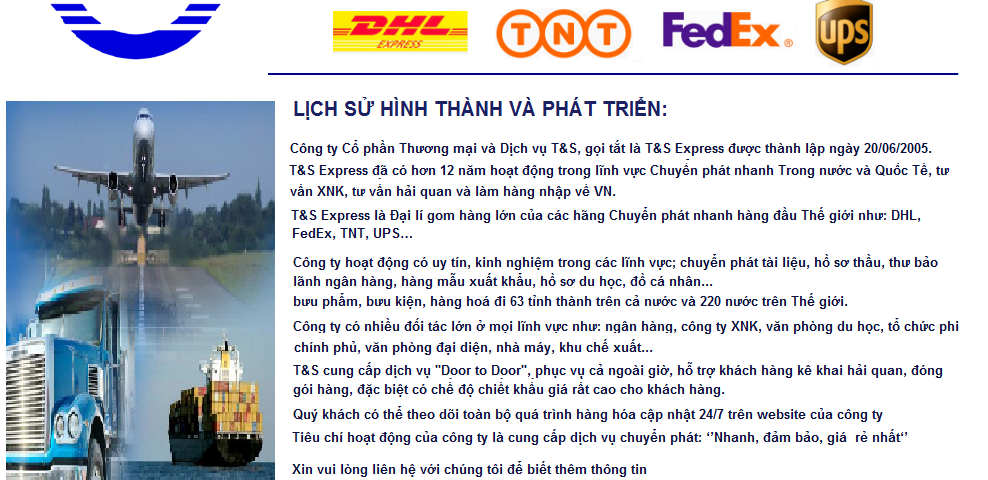 Là đại lí gom hàng lớn của các công ty Chuyển phát nhanh uy tín hàng đầu Thế giới như: DHL, FedEx, TNT, UPS…